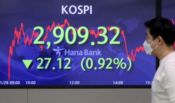 장 중에 2,900선까지 무너졌다가 다시 회복하는